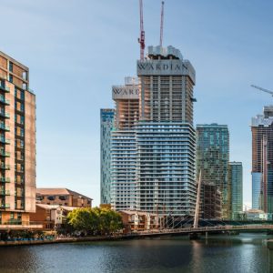Wardian London is a residential-led development in London Borough of Tower Hamlets, south of Canary Wharf in London’s Docklands E14. The development consists of two 55- and 50-storey botanically inspired towers comprising 764-apartment suites, restaurants, shops, a rooftop sky lounge and a 25-metre open-air swimming pool.